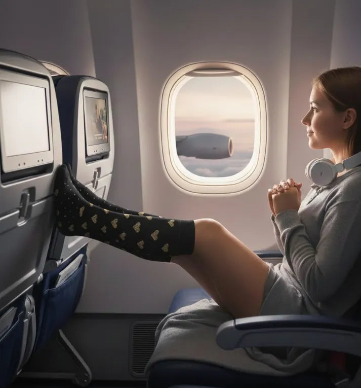 En voyage : Enfilez-les dès le départ pour arriver avec des jambes légères.